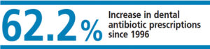 Why? A study that examined the prescribing patterns of dentists and physicians in British Columbia, Canada, found that between 1996 and 2013, physician prescribing declined by 18.2%, while dental prescribing increased by 62.2%.3 The authors suggested several possible explanations, including: