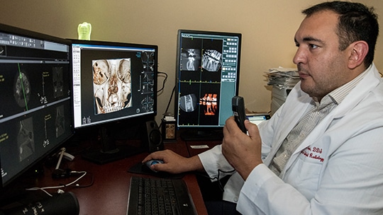 Located in the School of Dentistry’s Division of Radiology and Imaging Science (RIS) is a new 3D Virtual Print Lab capable of designing and manufacturing accurate life-size resin models of jaw bones, parts of faces and even entire skulls. These models help doctors plan surgeries and design surgical guides.