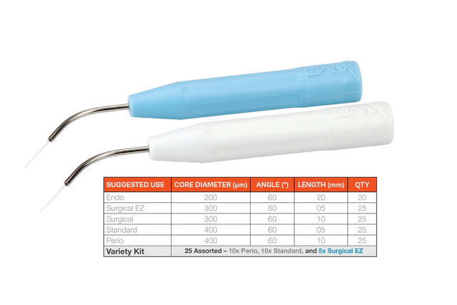 The LEAP system combines four key technologies: the Picasso Pro 810 nm diode laser, dedicated LEAP treatment protocol software, proprietary LEAP irrigation and disinfection solution, and disposable LEAP endodontic fiber tips. This integrated approach enables deep canal penetration, controlled thermal disinfection, and predictable bacterial reduction under low-energy laser parameters.