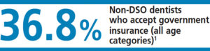 Another consideration is that DSOs may help deliver care to underserved populations. Instead of being a threat to traditional practice — and in light of data from the federal Health Resources and Services Administration that identify 5594 “dental health professional shortage areas” in the United States3 — could the rise of DSOs improve access to care? A potential beneficiary might be the patient who relies on government-sponsored insurance, such as Medicaid or the Children’s Health Insurance Plan (CHIP). Because public plans tend to pay the lowest rates for care, these patients may have difficulty finding providers willing to accept their coverage. Busy and well-established private practices simply have less need to accept patients with low-paying plans. The result is that those who rely on these programs for care have fewer choices in dentists willing to treat them.