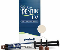 Packaged in a 5-ml syringe, Absolute Dentin LV from Parkell (800-243-7446; parkell.com) is a dual-cure core composite with a low-shrinkage filler that is said to provide remarkable compressive, tensile and flexural strength for strong and durable composite cores. The material cuts much like dentin and is formulated to ensure excellent adaptation to irregularly shaped tooth structures and post/core preparations. The material’s dual-cure capability supports complete polymerization in deep areas of the tooth and root when cementing posts and building up cores.