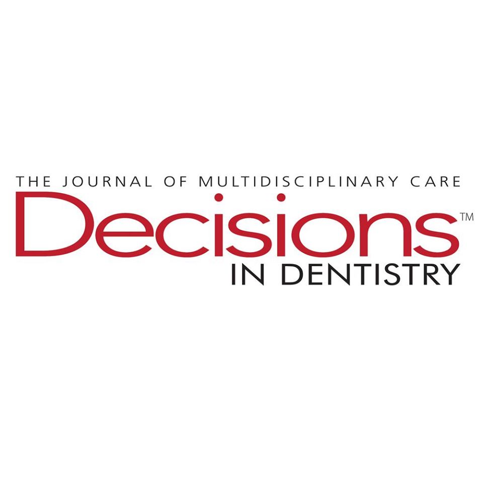 Written for dentists working in general, family and cosmetic dentistry, as well as specialists from all disciplines, Decisions in Dentistry is a peer-reviewed journal designed to support the highest standards of professionalism and integrity in multidisciplinary care. Reflecting the latest thinking from nationally ranked educators, researchers and clinicians, the journal presents evidence-based, clinically relevant articles in an inviting and easy-to-understand format. Unique in its approach, Decisions in Dentistry makes the complex simple and offers unbiased information and continuing education that dentists can use to improve their technique and provide the highest level of care.